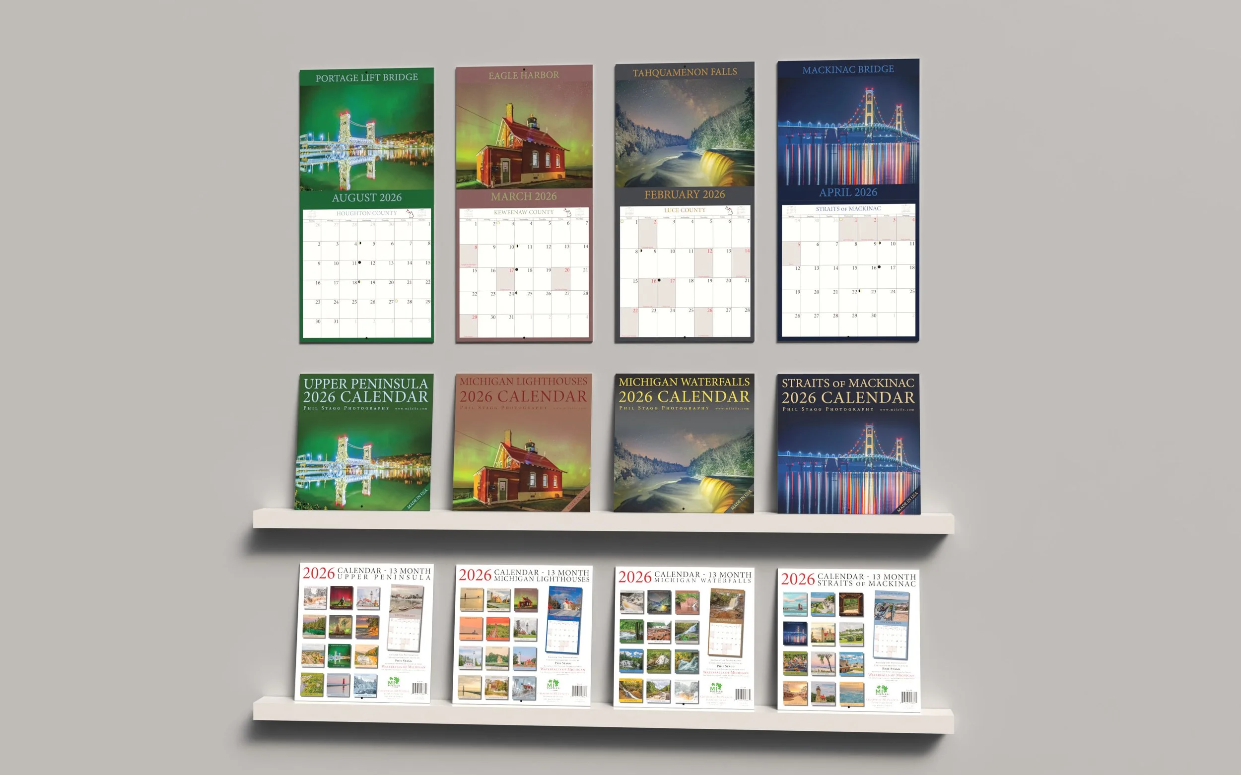 As 2026 approaches, we’re proud to unveil our newest collection of Michigan-themed wall calendars, designed to bring the beauty of the Great Lakes State into homes and stores across the country. These calendars are more than just practical tools—they’re a celebration of place, memory, and pride.